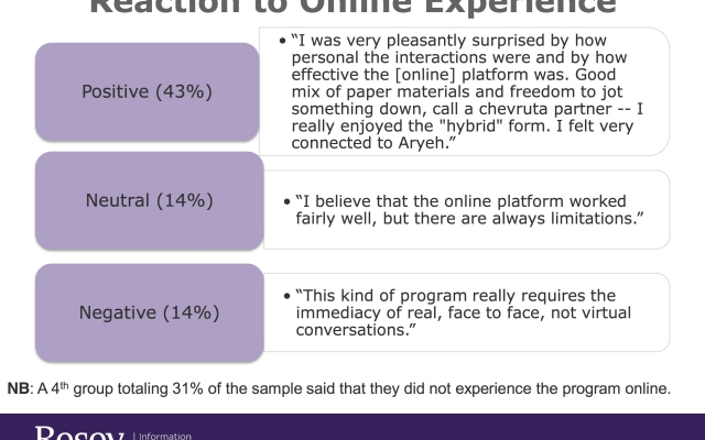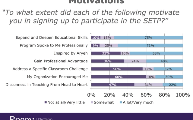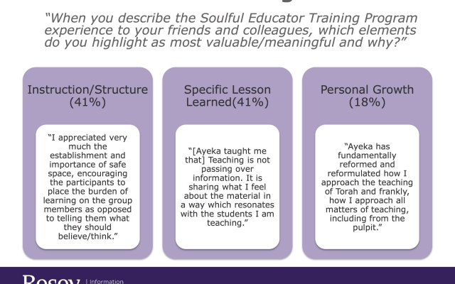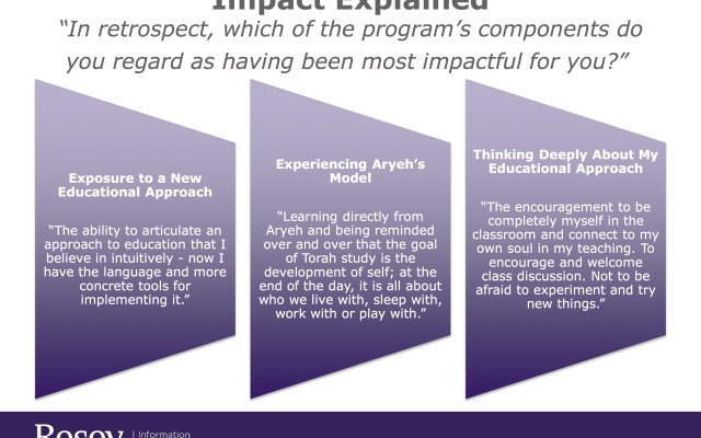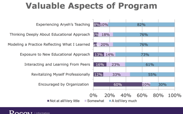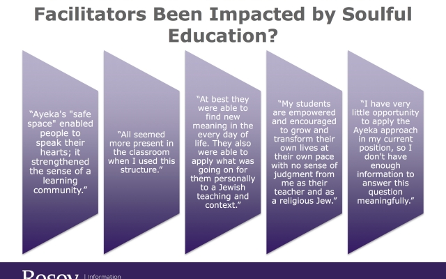 In 2014, Rosov Consulting Agency conducted a 6-month evaluation of 70% of Ayeka’s alumni involved in formal teaching. Over 90% of those interviewed said that the training: