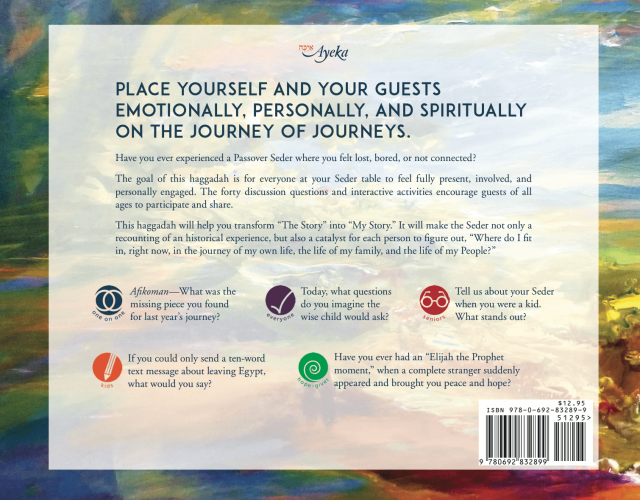 Now everyone at your Seder table can feel fully present, personally engaged and active. Complete with the full Seder text and filled with questions and activities that encourage self reflection, “The Ayeka Haggadah” helps guests of all ages come to the Seder ready to share, participate and connect with one another.